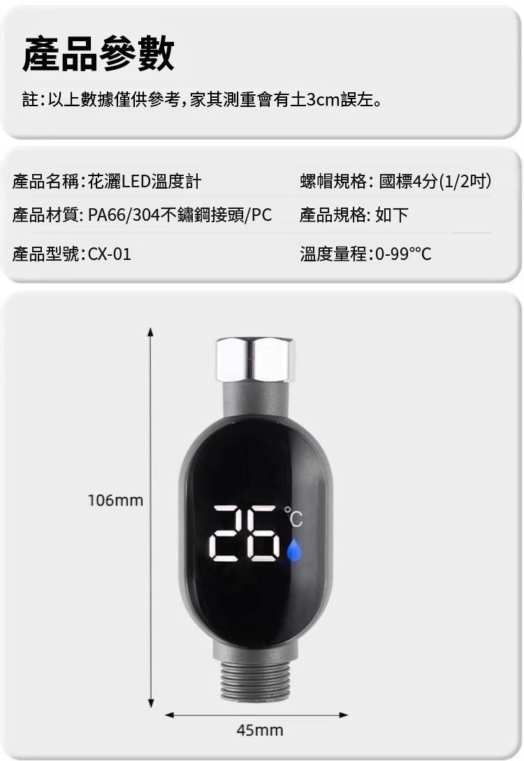智慧防水淋浴花灑溫度顯示器