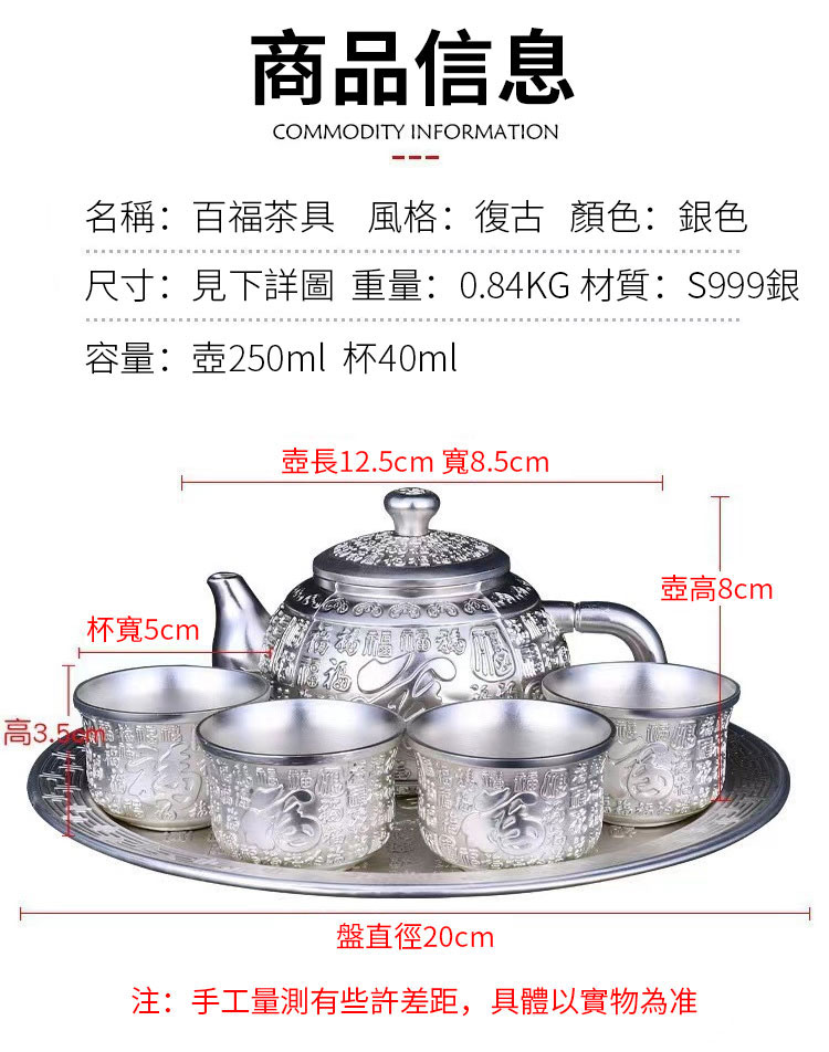 鎏銀百福茶具套裝